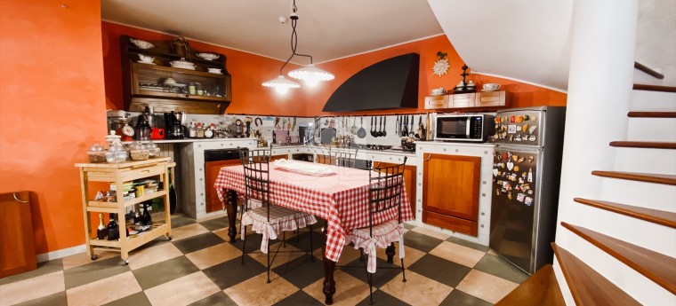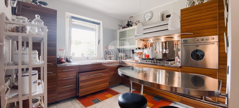 – ampio soggiorno luminoso, cucina, ripostiglio/lavanderia, disimpegno, due camere matrimoniali, bagno e tre ampie terrazze che circondano l’abitazione.